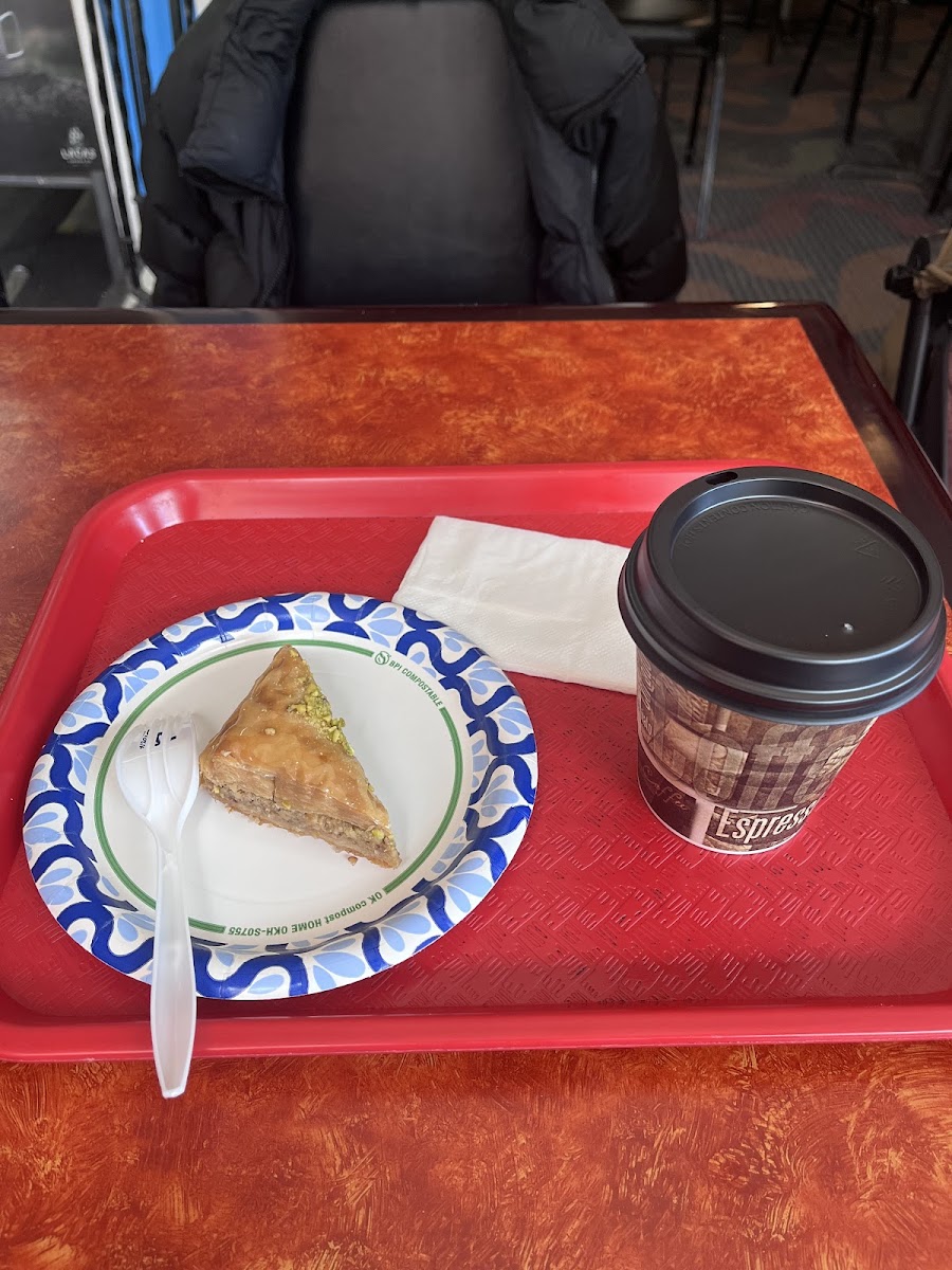 I really love baklava with honey and café au lait. They are very delicious and affordable. Highly recommended!
